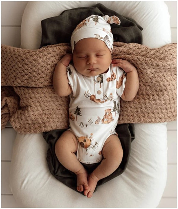 Soft and stretchy, these bodysuits are easy-care and coordinate well with pants and shorts. These bodysuits are also really comfortable to sleep in. All Snuggle Hunny clothing is made with...