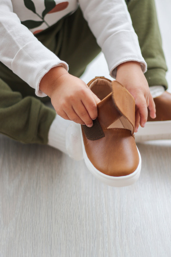 Leather Soft Sole Lace T-Bar Shoes - Tan