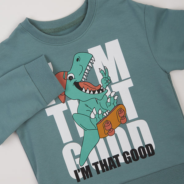Dark blue sweater with funky text. The sweater has a round neckline and ribbed trims on the long sleeves and hem. 100% Cotton Do not bleach Do not tumble dry...