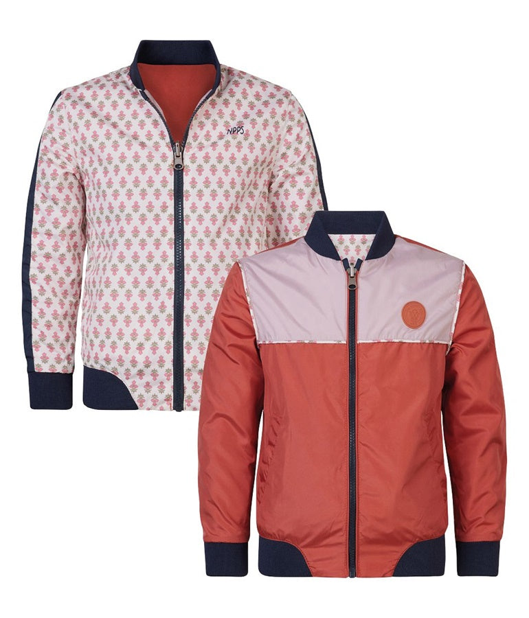 The Paducah coat by Noppies Kids is reversible: the coat features a floral print on one side and a sportive colour block look on the other side.