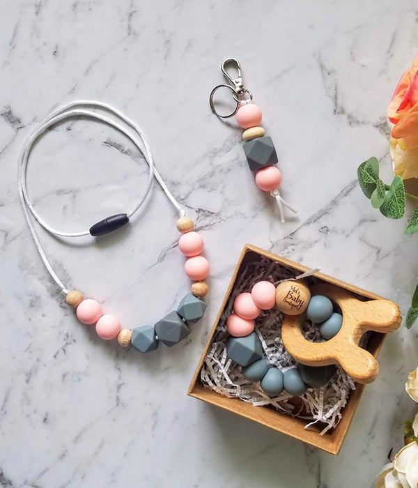 Made from food-grade silicone beads with beech wood to provide relief for sore gums.